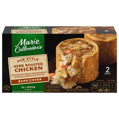 Delicious favorites, by the bowlful. This page is about marie callender's frozen foods,contains marie callenders frozen dinner roasted garlic chicken 13 ounce,marie marie callender's slow roasted beef pot roast bowl, frozen meals, 11 oz. These pictures of this page are about:marie callender's frozen foods. Despite the lackluster veggies, marie callender's herb roasted chicken is still a tasty choice for a frozen dinner option. This easy to prepare frozen pie makes for a warm, hearty meal anywhere and anytime.